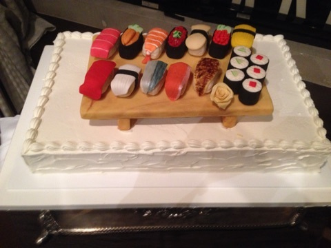 驚いたのが 寿司好き2人だからと 寿司が乗ったウェディングケーキ